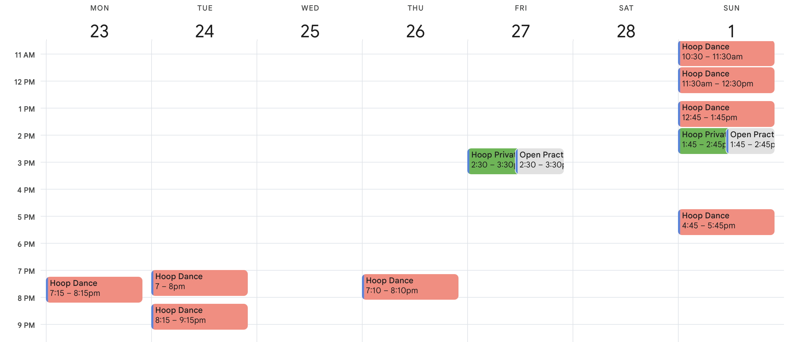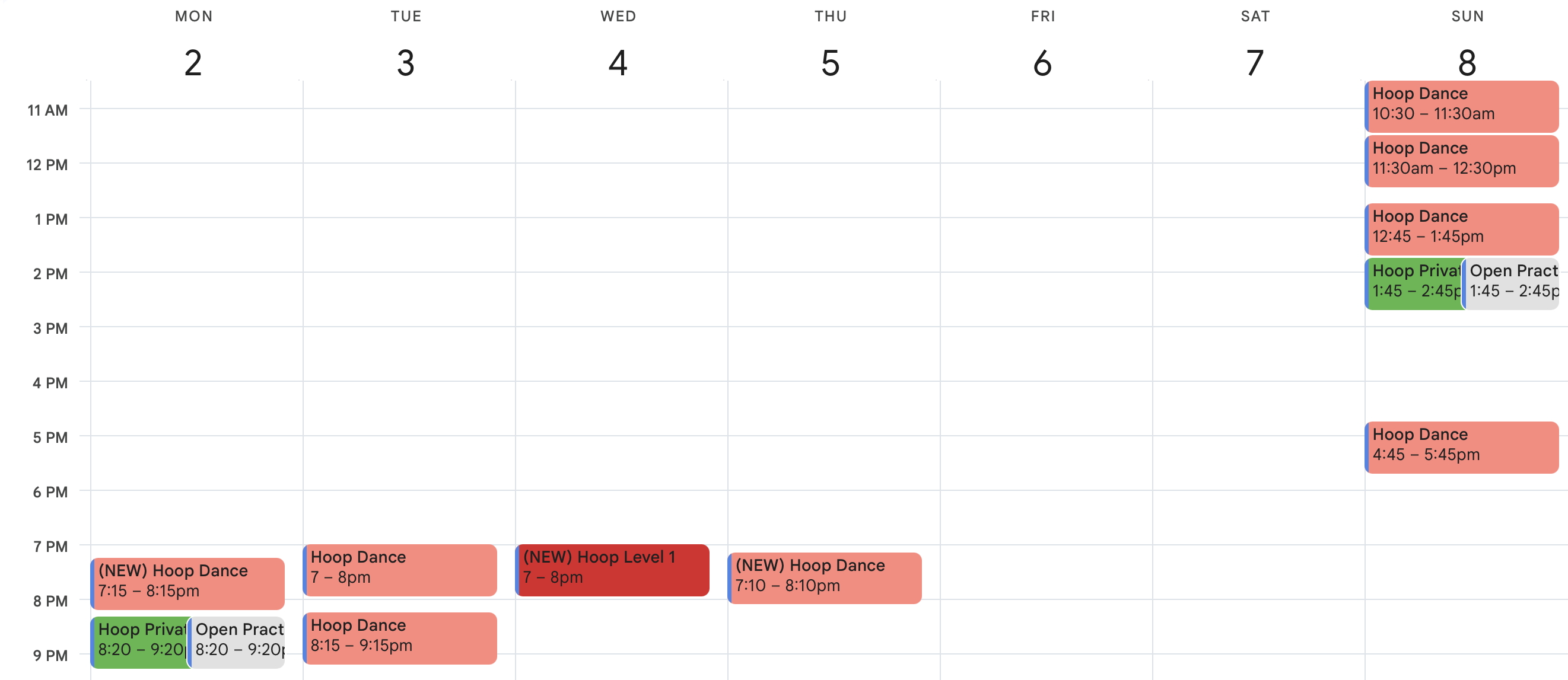 HOOP DANCE 8-week term start dates: